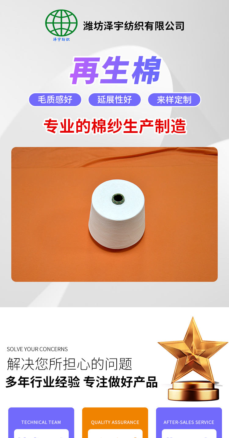 再生棉20\/JC80紗線40s澤宇紡織有證書GRS針織機織用紗 |