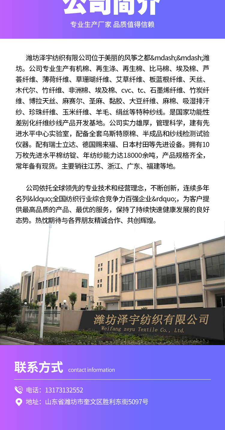 所屬行業(yè):紗線 | 主要客戶:服裝廠 面料廠等 | |