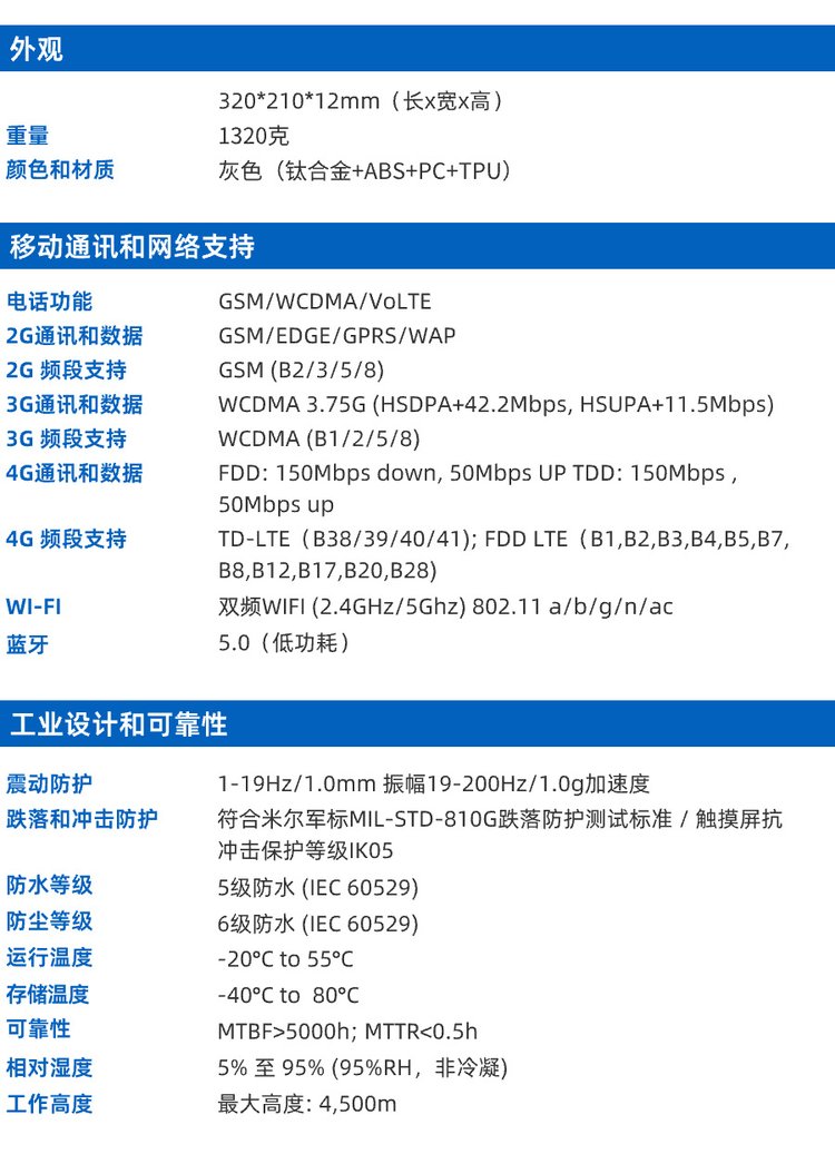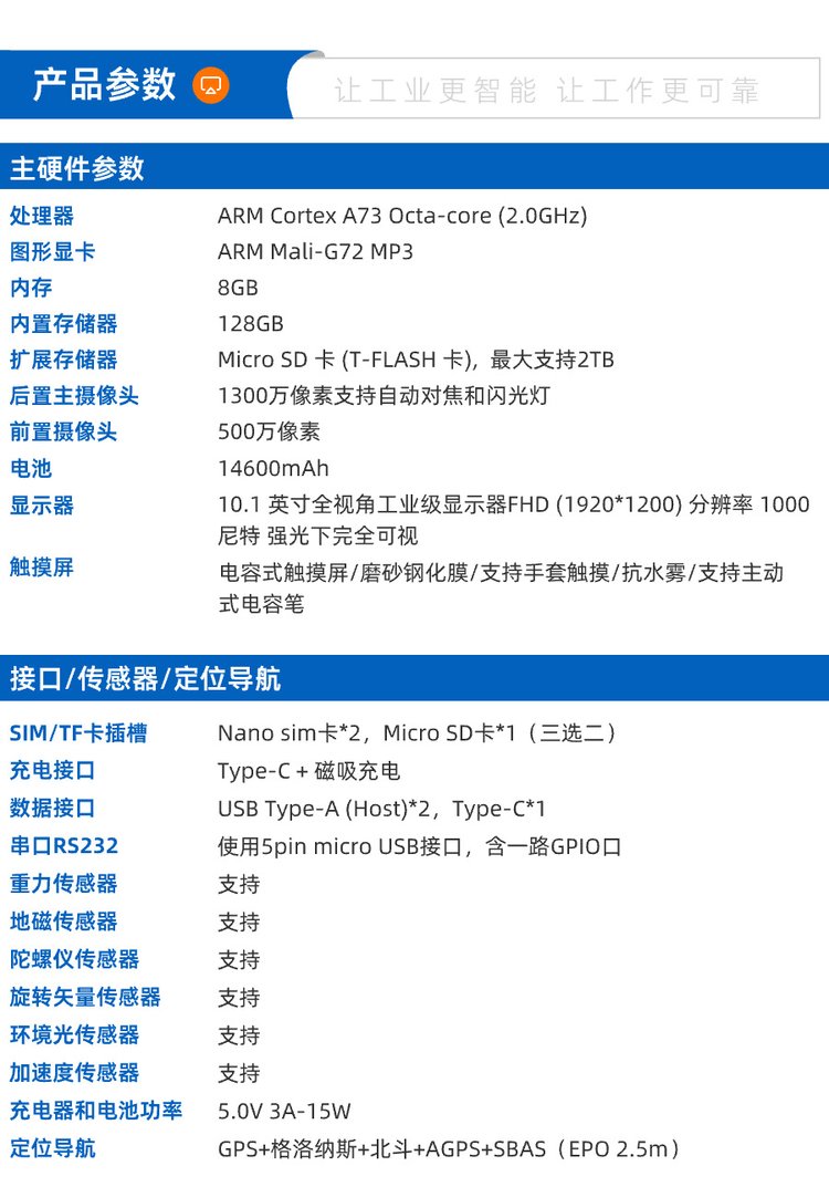 產(chǎn)品參數(shù) | | 品牌 | HUGEROCK | 屏幕尺寸 | 10.1英寸in | 上市時間 | 2024 | 貨源類別 | 現(xiàn)貨 | 操作系統(tǒng) | ANDROID | 處理器 | ARM | 存儲類型 | 閃存 | 硬盤容量 | 128GB | 攝像頭 | 雙攝像頭 | 藍牙 | 支持 | 通訊功能 | 支持電話 | 網(wǎng)絡類型 | WIFI | 內(nèi)置感應 | 智能重力感應 | 處理器核心 | 八核心 | 續(xù)航時間 | 9小時以上 | 附加功能 | 支持藍牙,GPS導航,重力感應 | 語言 | 其他 | 材質(zhì)\/工藝 | 鈦合金 ABS PC TPU | 產(chǎn)品尺寸 | 320*210*12mm(長x寬x高) | 重量 | 1320g | 加工定制 | 否 | 加印LOGO | 不可以 | 是否支持代理加盟 | 支持 | 最快出貨時間 | 4-7天 | 發(fā)票 | 提供發(fā)票 | 售后類型 | 店鋪保修 | 包裝清單 | USB數(shù)據(jù)線 x1, 充電器5V 2A x1, 用戶手冊 x1, 屏幕保護膜(貼好)x1, 注意事項 | 3C證書編號 | 2020011606274981 | 顏色 | 8 128G 灰色 1920*1200 1000nits E20 NFC,觸摸屏顯示屏總成\/黑色 絲印\/246.2*168*4.3MM | 主要下游平臺 | 亞馬遜,速賣通,獨立站,LAZADA | 主要銷售地區(qū) | 非洲,歐洲,南美,東南亞,北美,東北亞,中東 | 有可授權(quán)的自有品牌 | 是 | 是否跨境出口專供貨源 | 是 | 通訊類型 | 可插卡 | 是否專利貨源 | 否 | CPU類型 | ARM Cortex A73 octa-core | 無線電發(fā)射設備型號核準編碼 | 00000000 | CPU頻率 | 2.0GHz | RAM | 8GB | 可售賣地 | 北京;天津;河北;山西;內(nèi)蒙古;遼寧;吉林;黑龍江;上海;江蘇;浙江;安徽;福建;江西;山東;河南;湖北;湖南;廣東;廣西;海南;重慶;四川;貴州;云南;西藏;陜西;甘肅;青海;寧夏;新疆 | 類型 | 商務平板電腦 | 型號 | R101 | 貨號 | 05121052 | |
