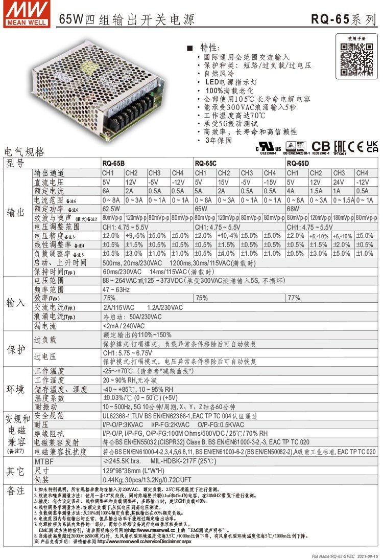 RQ-65D65W四路輸出明緯電源高效長(zhǎng)壽命高可靠明緯授權(quán)現(xiàn)貨 |