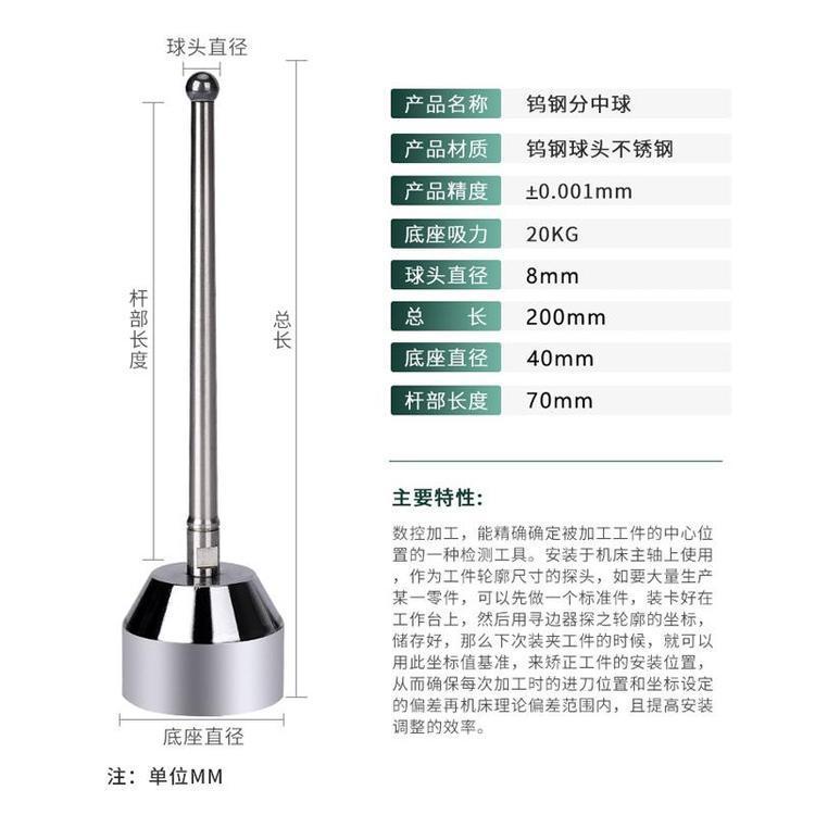 鎢鋼高精度分中球3型強(qiáng)磁力火花機(jī)必備配件尋邊器