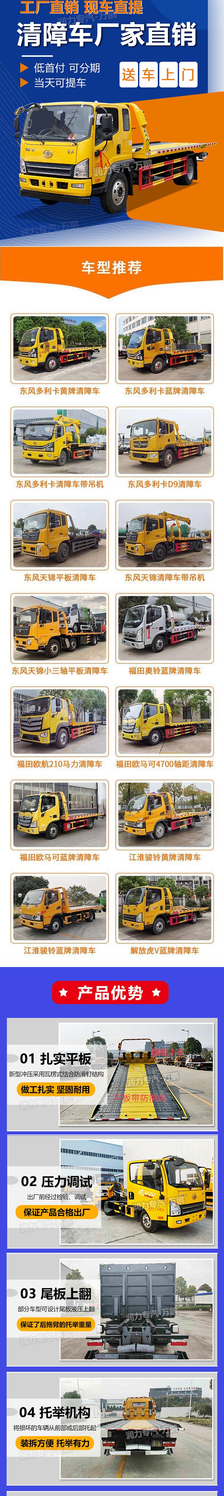 藍牌福田歐馬可清障車高速救援車5.3米長一體板操作方便 |