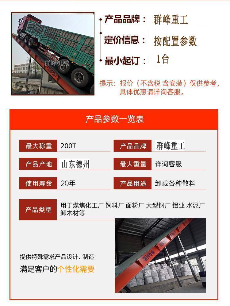 液壓卸車機(jī)兩側(cè)支撐100后翻式糧庫(kù)卸糧用無(wú)人值守卸車系統(tǒng) |