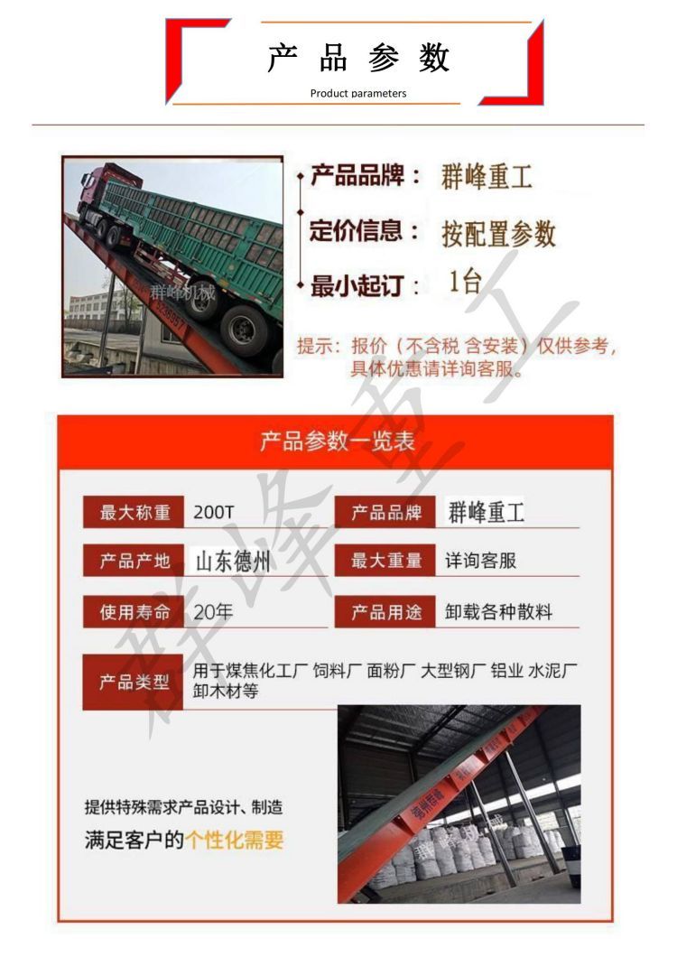 食品液壓卸車機(jī)散糧翻板卸車平臺群峰重工定制 |