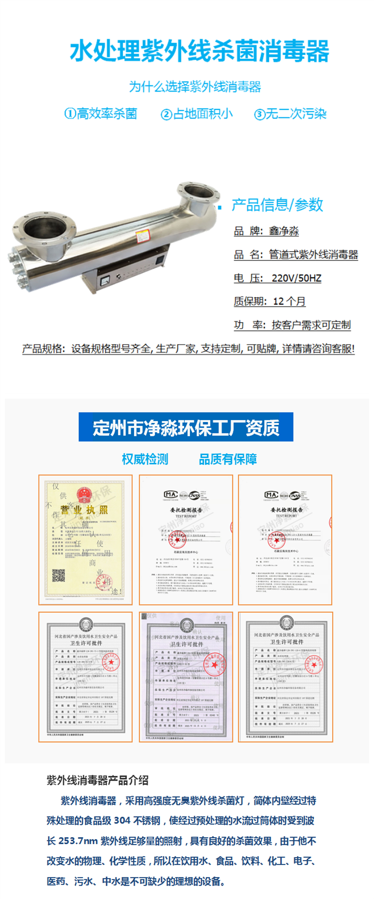 泳池養(yǎng)殖水消毒紫外線殺菌器鑫凈淼JM-UVC消毒器有檢測報(bào)告 |
