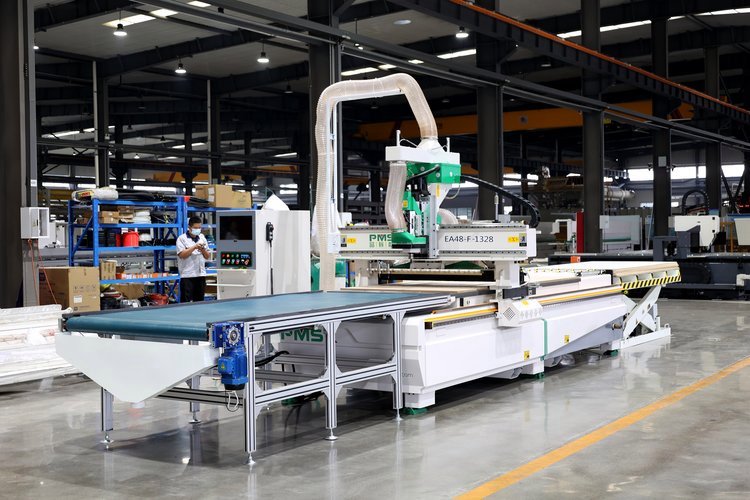 ? ? ? ? ? ? ? ? ? ? ? ? ? ? ? ? ? ? ? ? ? ? ? ? ? ? ? ? ? 品脈數(shù)控EA48全自動木工下料機(jī) 四九尺四九尺板都可加工? ? 產(chǎn)品簡介 直排全自動上下料加工中心數(shù)控開料機(jī),適合用于板材長期高速切割開料,系統(tǒng)具備自動排隊(duì)功能,配套上下料平臺及六面鉆,不需翻板作業(yè),可連續(xù)自動加工。 優(yōu)勢特點(diǎn): ◆設(shè)計(jì)先進(jìn):電機(jī)后置式安裝、Y軸導(dǎo)軌齒條分面安裝、優(yōu)化推料除塵結(jié)構(gòu)、Z軸獨(dú)特的臺灣原裝端部支撐等與眾不同的設(shè)計(jì)保證了設(shè)備的先天高品質(zhì)特性,充分保障在使用過程中可高速度、高精度加工、運(yùn)行穩(wěn)定。 ◆工藝先進(jìn):整機(jī)床身8mm厚壁方管45°無縫焊接而成,業(yè)內(nèi)首批采用大型數(shù)控五面鉆銑床精加工床身、龍門及立柱,裝配精度采用百分表、激光干涉儀等檢測,確保設(shè)備自身的高精度。 ◆配置高端:臺灣臺達(dá)或新代系統(tǒng)、進(jìn)口大功率伺服與精密減速機(jī)、臺灣直線滑軌與原裝滑塊、德國研磨齒條、西門子開關(guān)按鈕等高品質(zhì)進(jìn)口配件,品脈數(shù)控只用高品質(zhì)配件,保障設(shè)備長期運(yùn)行穩(wěn)定。 ◆操作簡單:人性化控制系統(tǒng),兼容性強(qiáng)、容量大,準(zhǔn)確響應(yīng)伺服驅(qū)動信號,具備自動排隊(duì)功能、行業(yè)首創(chuàng)一鍵銑底板、一鍵加工預(yù)埋件等便利性功能。 ◆技術(shù)成熟:公司擁有專業(yè)的設(shè)計(jì)開發(fā)團(tuán)隊(duì),有全系列板式家具開料機(jī)、數(shù)控五面鉆與六面鉆、全自動板式家具智能生產(chǎn)流水線及門板生產(chǎn)流水線、實(shí)木數(shù)控加工設(shè)備、多軸數(shù)控加工中心產(chǎn)品等多項(xiàng)專利及先進(jìn)技術(shù),設(shè)備成熟可靠。 可選自動上下料 技術(shù)參數(shù) 型號:EA48 單臺面行程范圍:1300mm*2500/2800mm*200mm 最大加工尺寸:1220mm*2440/2800mm 空行速度:70m/min 最大加工速度:20m/min 傳動形式:X/Y軸齒條,Z軸絲杠 主軸參數(shù):9KW*1風(fēng)冷24000RPM 操作系統(tǒng):臺灣臺達(dá)/臺灣新代 刀庫容量:標(biāo)配12把 臺面結(jié)構(gòu):多分區(qū)真空吸附臺面 工作電壓:380V/50Hz 外形尺寸:3.5m長*2.1m寬*2.3m高 整機(jī)重量:2600Kg 機(jī)器凈功率:15KW 整機(jī)運(yùn)行功率:25.5KW 品脈工廠 |