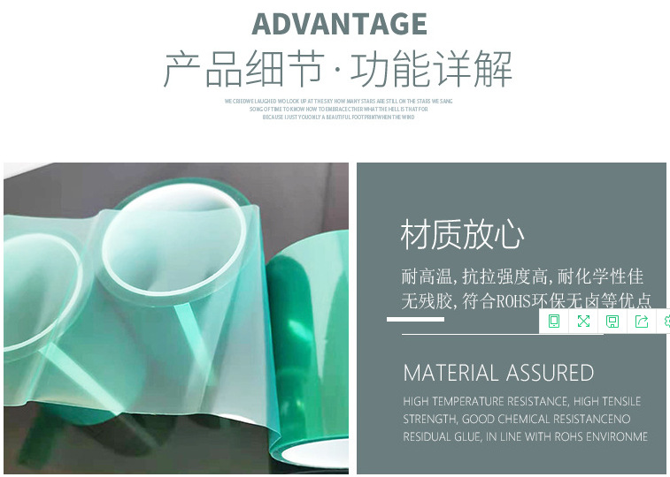 PET綠色高溫膠帶噴涂烤漆保護(hù)膜高粘不殘膠耐酸堿 |