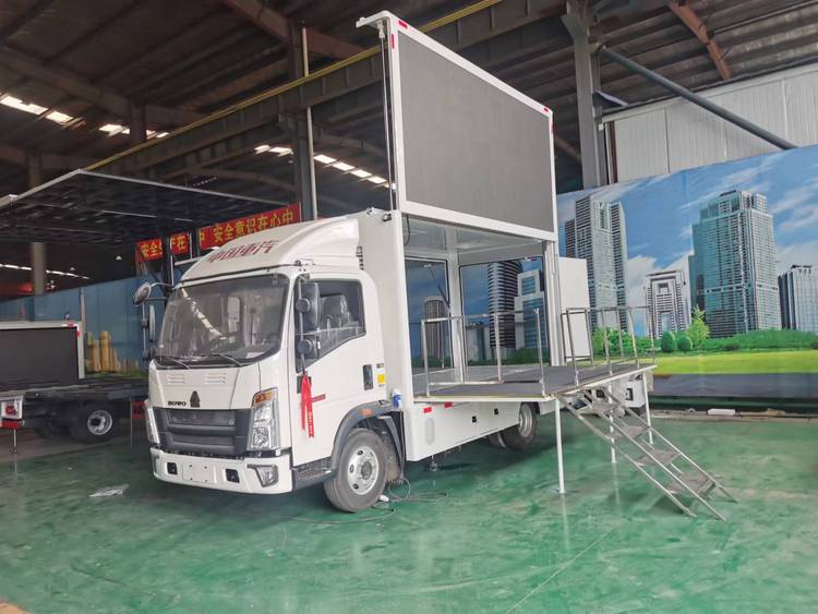 國六重汽豪沃單屏舉升帶雙面舞臺車流動LED彩屏電子屏廣告車 |