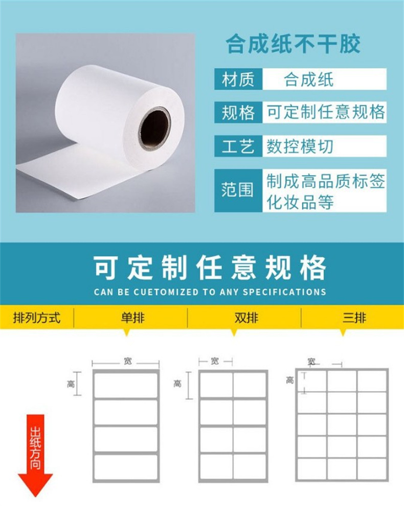 PP合成紙不干膠條碼標(biāo)簽紙防水防油直接噴墨可彩印宏山 |