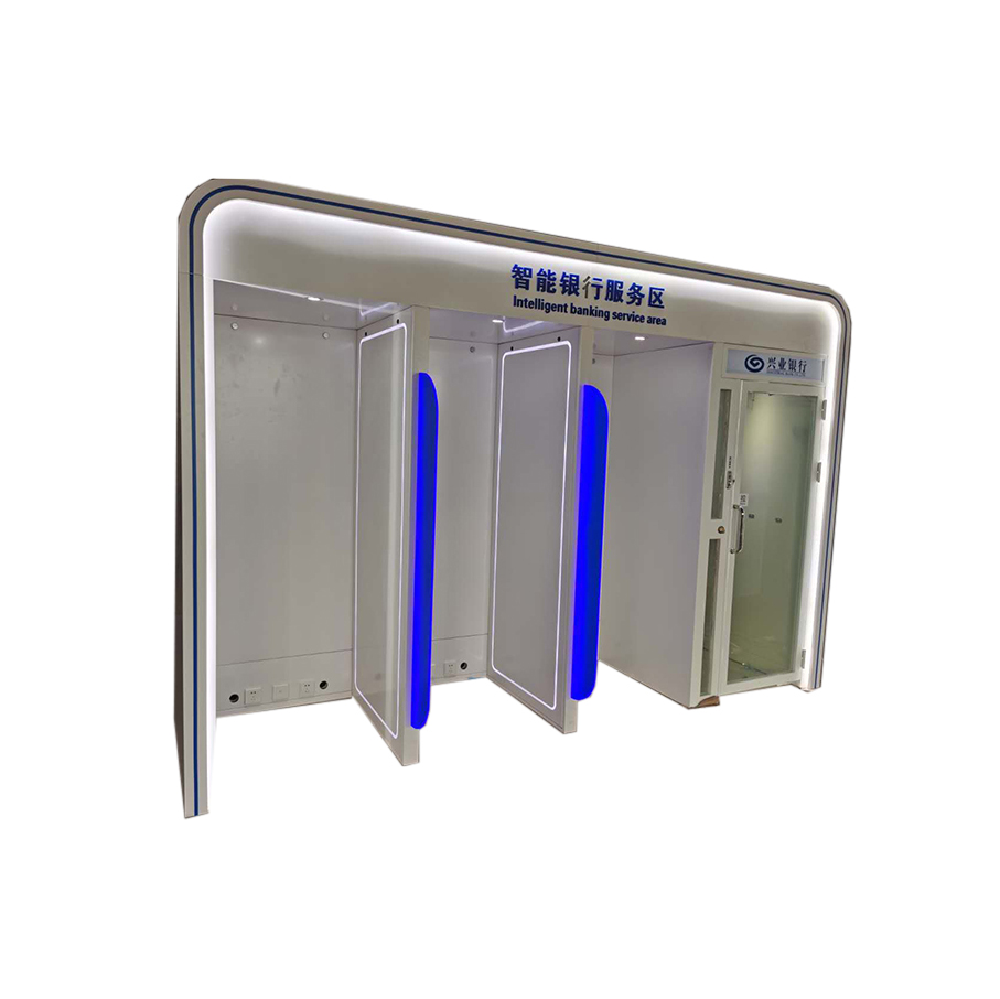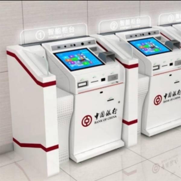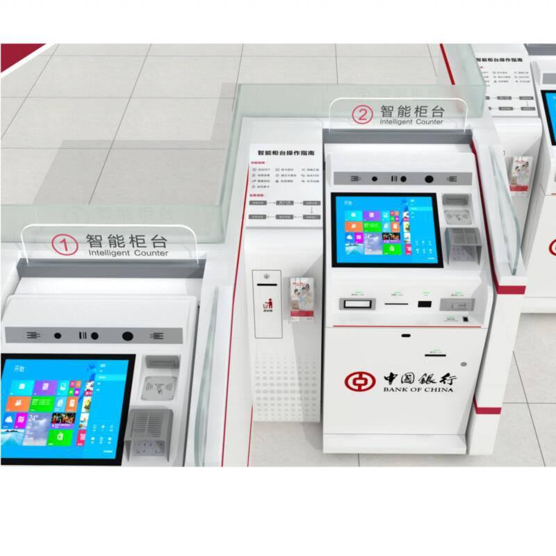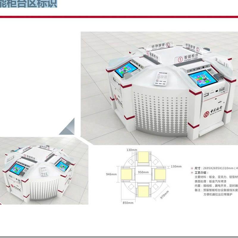 中國銀行靠墻式直排智能柜臺(tái)服務(wù)區(qū)機(jī)罩定制制造 |