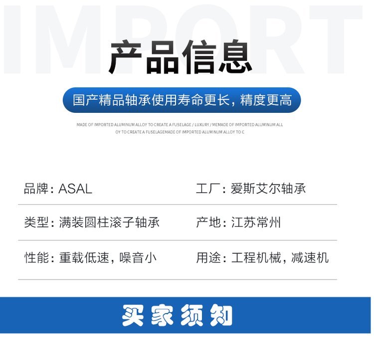 常州市愛斯艾爾軸承制造有限公司專業(yè)生產(chǎn)無外圈滿裝圓柱滾子軸承十五年,為多家國內(nèi)外知名品牌做代工。產(chǎn)品遠銷海外。質(zhì)量穩(wěn)定,可替代進口。 無外圈滿裝圓柱滾子軸承系列有:RSL系列,CPM系列,F(xiàn)-系列。用于減速機齒輪箱等, 無外圈滿裝圓柱滾子軸承CPM系列:CPM2520,CPM2706,CPM2721,CPM2528(品牌:愛斯艾爾) 各類型號庫存齊全,具體尺寸,歡迎添加以下客服二維碼微信咨詢! ?注: ? ? 價格可能是商品的銷售指導(dǎo)價或該商品的曾經(jīng)展示過的銷售價等,并非原價,僅供參考,若商家對價格有進行說明的,以商家的表述為準。