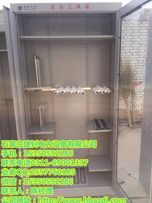 2、柜體表面為靜電防腐噴塑工藝,顏色為駝灰皺,柜門裝有通體透明有機(jī)玻璃,通過玻璃門可以看到分類有序的各種工器具。