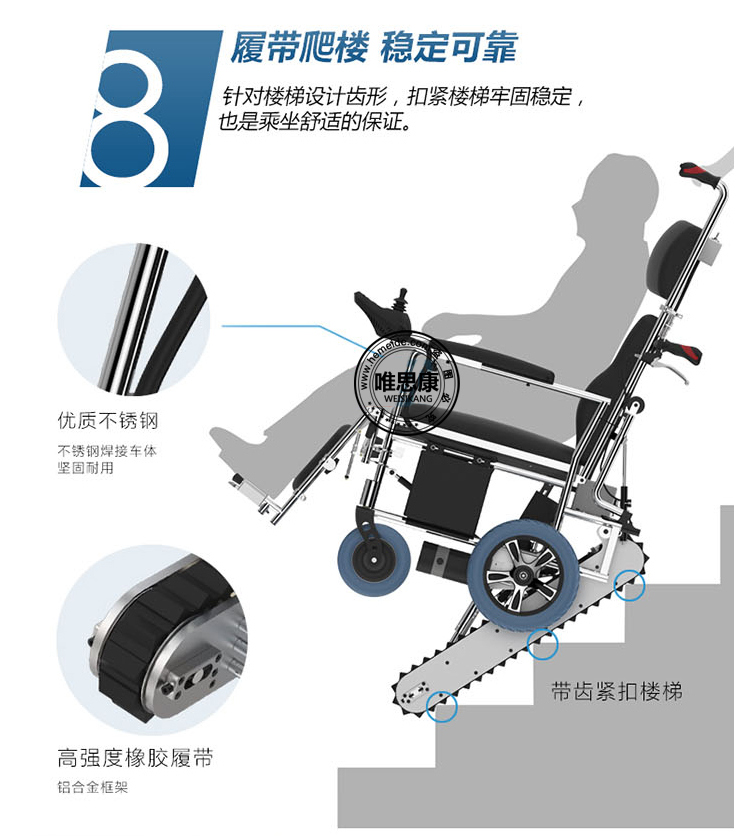 | 唯思康自由行3老年電動(dòng)履帶爬樓輪椅 電動(dòng)載人爬樓車 電動(dòng)爬樓機(jī) |