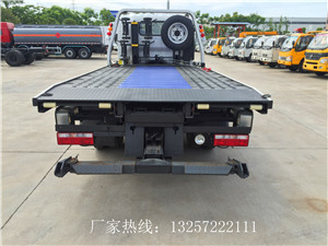 (1)老款伸縮尾板:一拖二型(3P1)沖壓式平板,板上開孔,平板長度為4.2-4.3米,寬2.3米,后部一塊1米長的液壓伸縮尾板,加裝前配重。雙側(cè)聯(lián)動操作裝置,1個4噸液壓絞盤(25米鋼絲繩),1~2個工具箱(根據(jù)底盤空間制作),L型托叉一對,拖叉一對,拖叉座一對,擋胎2個,2個輔助輪小車,4根綁帶,一個洗手箱,鏈鉤一條,帶液壓自動式伸縮尾板,加前配重,帶后托舉(可選擇不帶后托舉)。