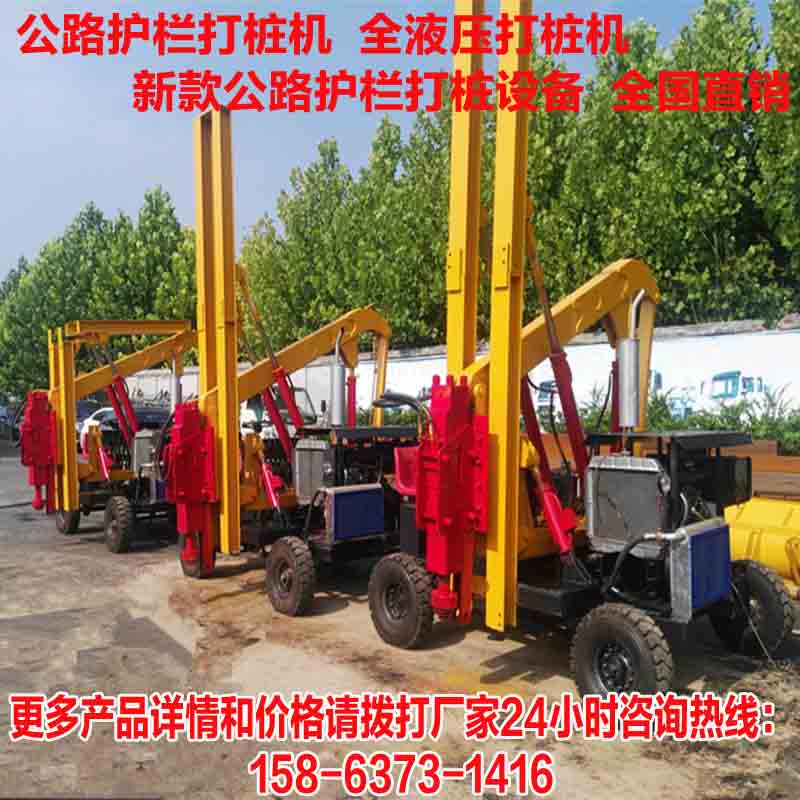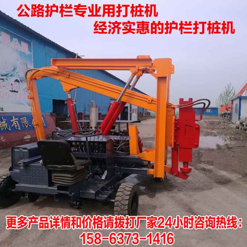 公路護(hù)欄打樁分為砸樁和鉆孔兩種模式,山東濟(jì)寧藍(lán)云機(jī)械經(jīng)過多年的研發(fā)設(shè)計把這兩種功能集于一種打樁設(shè)備上,那就是鏟車一體式打樁機(jī),又叫打拔一體機(jī),還能夠具有裝載的作用,一舉多得。鏟車型公路護(hù)欄打樁機(jī)適合多種工況下施工,標(biāo)配有輪胎式行走模式,移動快速便捷,打樁鉆孔效率高且速度快,能為客戶帶來可觀的效益,如果您想咨詢這款車型我們可以提供一下藍(lán)云機(jī)械產(chǎn)品的標(biāo)配參數(shù)供您參考: 液壓系統(tǒng)流量L/min:110 額定系統(tǒng)壓力:15 輪距mm:1500 外形尺寸mm:4200*2200*2900 柴油機(jī)功率kw:65 整機(jī)重量kg:4780 行駛速度km/h:16 液壓錘重量:kg 液壓錘沖擊頻率:400-800 液壓錘工作流量L/min:80-110 液壓錘工作壓力pm:13-15 設(shè)備提供定制選裝,可以提供更高功率的發(fā)動機(jī)供選擇,藍(lán)云機(jī)械生產(chǎn)的公路護(hù)欄打樁機(jī)結(jié)構(gòu)先進(jìn)合理、經(jīng)久耐用,如果想咨詢更多關(guān)于本產(chǎn)品的詳情請咨詢本廠14小時咨詢熱線:劉經(jīng)理 158-6373-1416(劉經(jīng)理)