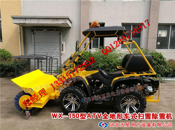 河北五星電力設備有限公司研制生產(chǎn)的“冀虹”WX-150型ATV全地形車式掃雪除雪機一機多用、一人駕駛,體積小巧靈活、速度快、操作簡單、造型新穎du特,一輛“冀虹”WX-150型ATV全地形車式掃雪除雪機即可輕松的完成20個人工或6~8臺手扶式除雪機的工作量。每小時除雪面積達25000平方米。用戶在購買時可根據(jù)除雪需求而選擇配置不同的除雪和清掃裝置。