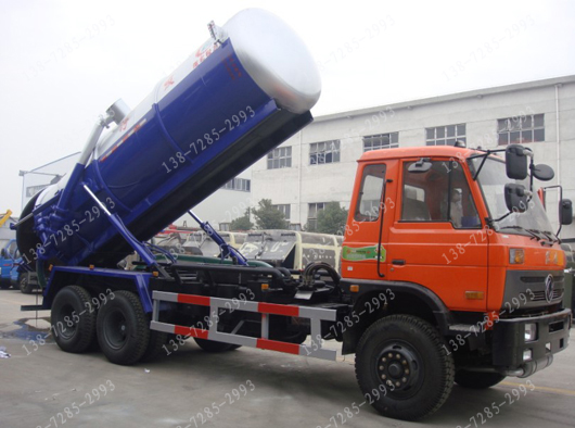 罐體帶液壓自卸,尾蓋液壓開啟,配大功率真空泵,吸力強勁。整車設計合理,性能優(yōu)良。它適用各種液態(tài)、半液態(tài)(下水道,化糞地,水井,礦井的淤泥及小于50mm的石塊,固體物)。本產品配泵用單級旋片油封真空泵,不銹鋼離心鑄的低速泵,真空度高,吸程遠,質量穩(wěn)定,使用壽命長,油氣,水氣分離及管網裝置。還可進行正負壓作業(yè),具有加壓強排和自排功能,吸污罐可液壓自卸,后蓋可液壓打開。