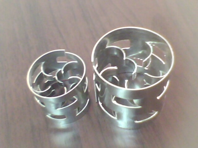 鮑爾環(huán)填料是一種新型填料,是針對(duì)拉西環(huán)的一些主要缺點(diǎn)加以改進(jìn)而出現(xiàn)的,是在普通拉西環(huán)的壁上開八層長方形小窗,小窗葉片在環(huán)中心相搭,上下面層窗位置相互交搭而成。它與拉西環(huán)填料的主要區(qū)別是在于在側(cè)壁上開有長方形窗孔,窗孔的窗葉彎入環(huán)心,由于環(huán)壁開孔使得氣、液體的分布性能較拉西環(huán)得到較大的改善,尤其是環(huán)的內(nèi)表面積能夠得以充分利用。