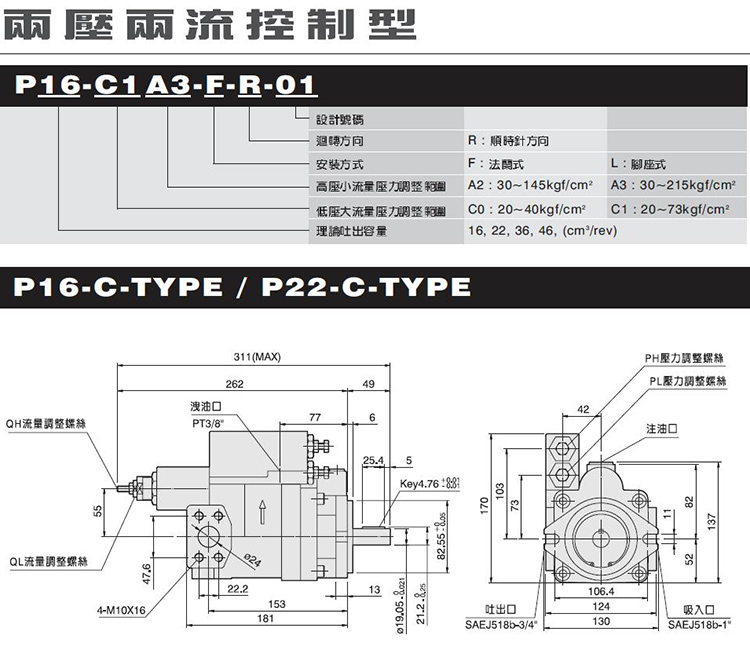 | HHPC 臺(tái)灣旭宏 P16-C系列 雙壓雙流控制型 柱塞泵 |