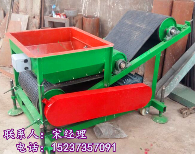 玉米大豆揚(yáng)場機(jī)/谷物清雜拋糧機(jī)/農(nóng)用機(jī)械入倉機(jī); 玉米拋糧機(jī)移動(dòng)方便,可將糧食直線狀拋出,拋出距離可達(dá)6-8米,本機(jī)不用輸送帶可直接裝糧食跑進(jìn)庫內(nèi),它也被稱為“揚(yáng)場機(jī)”。拋糧機(jī)主要有傳動(dòng)輪,壓帶輪及被動(dòng)輪組成,壓帶輪可控制糧食拋射的高度,該拋糧機(jī)轉(zhuǎn)速為每分1440轉(zhuǎn),高速運(yùn)轉(zhuǎn)下迫使物料及慣性向前上方運(yùn)動(dòng)被皮帶送出,由于皮帶為特殊加工的多坑圓點(diǎn)輸送帶,輸送中有定向作用,便于糧食的收集,該機(jī)移動(dòng)方便,使用時(shí)需將水平固定絲桿升起,高度為有限可調(diào)!拋糧機(jī)電機(jī)功率為:5.5kw-6級(jí)電機(jī),電機(jī)采用名牌銅芯線苞,其動(dòng)力大,電機(jī)不易損壞等特點(diǎn)!