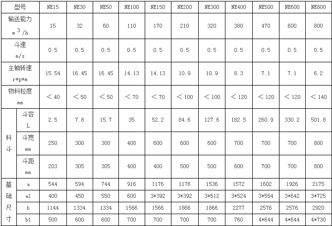 NE型斗式提升機(jī)的用途及特點(diǎn) NE系列板鏈?zhǔn)教嵘龣C(jī)共有11種型號(hào):NE15、NE30、NE50、NE150、NE200、NE300、NE400、NE500、NE600、 NE800。 NE系列斗式提升機(jī)具有以下特點(diǎn): 1、提升范圍廣。這類提升機(jī)對(duì)物料的種類、特性及塊度的要求少。不僅能提升一般粉狀、粒狀和塊狀物料,而且 可提升磨琢性大的物料。物料溫度≤250度。 2、輸送能力大。該系列提升機(jī)具有NE15~NE800多種規(guī)格。提升量范圍為15~800m 3 /h。 3、驅(qū)動(dòng)功率小。這類提升機(jī)采取流入式喂料,重力誘導(dǎo)式卸料,且采用密集型布置的大容量料斗輸送,鏈速低提 升量大。物料提升時(shí),幾乎無(wú)回料和挖料現(xiàn)象,因此無(wú)效功率少,所耗功率是環(huán)鏈提升機(jī)的70%。 4、使用壽命長(zhǎng)。提升機(jī)的喂料采取流入式,無(wú)需用斗挖料,材料之間很少發(fā)生擠壓和碰撞現(xiàn)象,本機(jī)的設(shè)計(jì)保證 物料在喂料、提升和卸料中不會(huì)撒料,減少了機(jī)械磨損,輸送鏈采用板鏈?zhǔn)礁邚?qiáng)度耐磨鏈條,大大延長(zhǎng)了使用壽 命。正常使用下,輸送鏈?zhǔn)褂脡勖^(guò)5年。