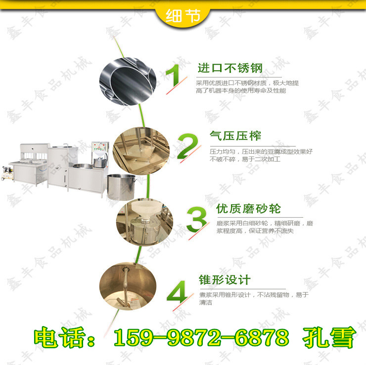 Xin feng in the New Year is also constantly beyond the self, constantly pushing new. Make our fully automatic beancurd machine forever in the forefront of the industry鑫豐豆腐機廠家咨詢服務(wù)電話:159-9872-6878 聯(lián)系人:孔雪