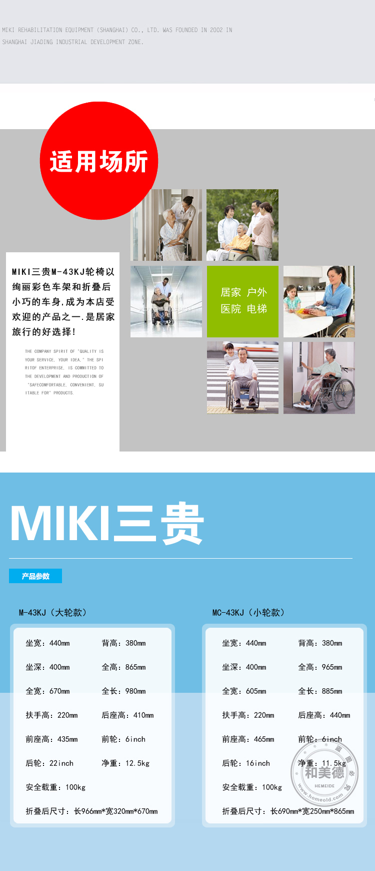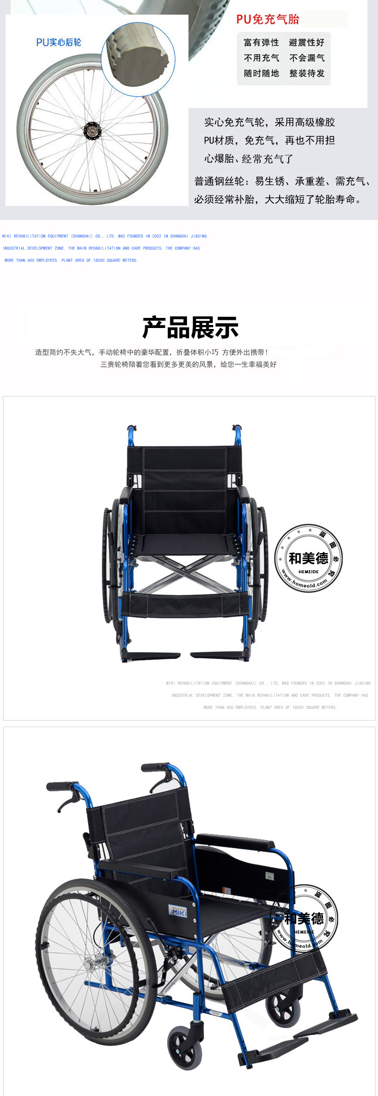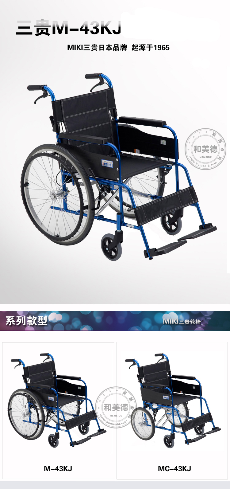 | 日本MIKI三貴彩色新款MC-43KJ航太鋁輪椅 后背可折疊 色彩絢麗 免充氣輪 |