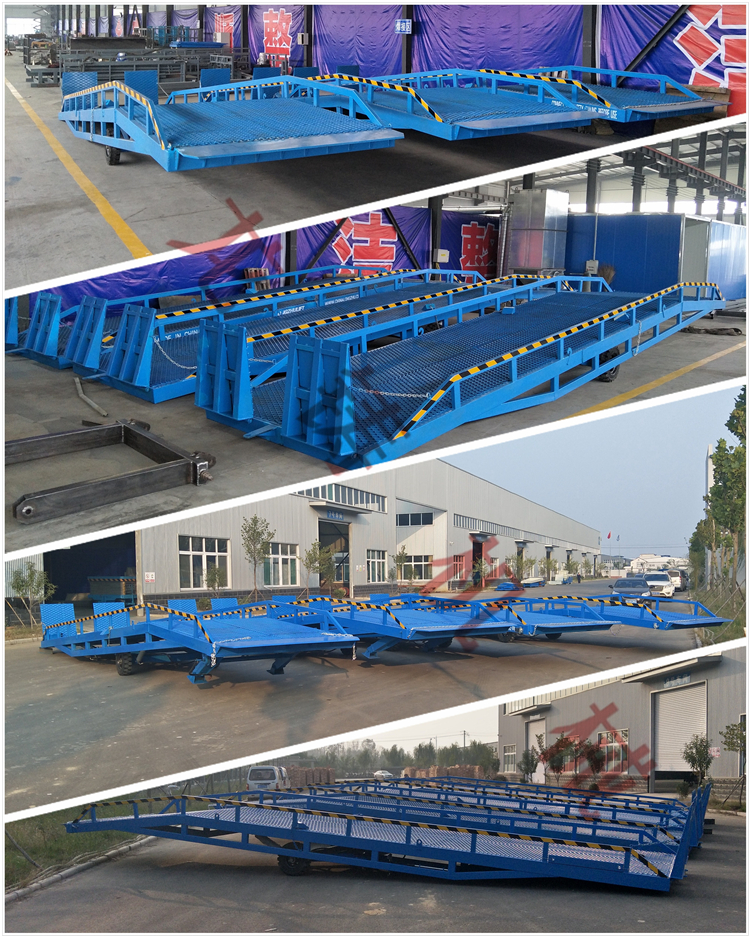移動式登車橋是與叉車配合使用的貨物裝卸輔助設(shè)備,可根據(jù)汽車車廂的高低 調(diào)節(jié)高度,叉車可以直接通過本設(shè)備駛?cè)胲噹麅?nèi)部進(jìn)行貨物的批量裝卸,只需 單人作業(yè),即可實現(xiàn)貨物的快速裝卸。它使企業(yè)減少大量勞力,提高工作效率, 獲取更大經(jīng)濟效益。 臺面采用特制的菱形網(wǎng)格板有可靠的強度,能保證長期使用而不變形。它的菱形 網(wǎng)狀結(jié)構(gòu),充分保證了很好的防滑性能,使叉車有更好的爬坡性和可操縱性。即 使在雨、雪天氣,仍能保證正常使用。