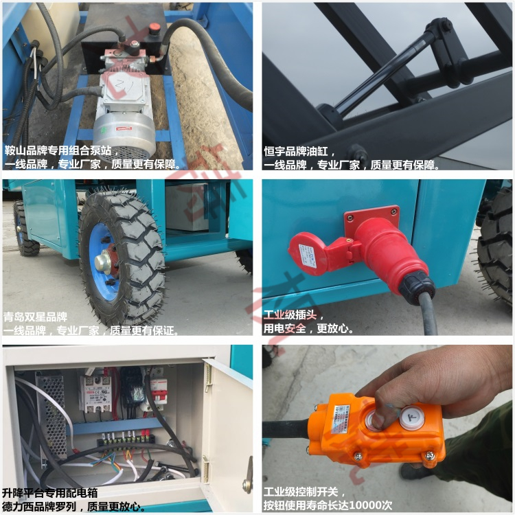 移動式電動液壓升降機物料提升機電動小型家用液壓升降機貨梯 移動式電動液壓升降機物料提升機電動小型家用液壓升降機貨梯 移動剪叉式升降平臺是用途廣泛的高空作業(yè)專用設備。它的剪叉機械結(jié)構(gòu),使 升臺起升有較高的穩(wěn)定性,寬大的作業(yè)平臺和較高的承載能力,使高空作業(yè)范 圍更大、并適合多人同時作業(yè)。升降動力分為220V或380V電源,柴油機,或電 瓶動力源,特殊環(huán)境也可采用防爆泵站及防爆電器。升高4——22米,載重0.3 —3噸。采用意大利和國產(chǎn)液壓泵站,臺面使用防滑絕緣扣板,具有防滑,絕緣、