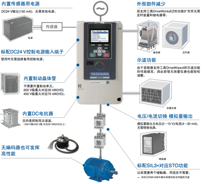 您是否在為如何降低成本而苦惱? 通過(guò)在變頻器主體上加入外圍設(shè)備的功能,從而不需要外圍設(shè)備,可節(jié)省空間、接線及人力,使初期投資最小化。