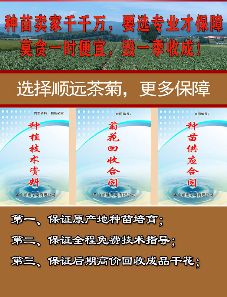 品種 金絲菊苗 菊花種苗 貢菊苗 婺源皇菊苗 菊花苗 藥菊苗 七月菊苗 貨號(hào) 2019-5 主要觀賞部位 觀花 是否進(jìn)口 否 花色色系 黃白 花型 重瓣 花期 7-10 園林用途 經(jīng)濟(jì)作物 品牌 順遠(yuǎn)茶菊 銷售范圍 全國 商品介紹 2021年金絲菊苗、貢菊苗、婺源皇菊苗、七月菊苗大量上市。! 在此,我們鄭重承諾: 第一、原產(chǎn)地培育、保證種苗品質(zhì)純正,保證存活率,可簽訂《種苗訂購合同》; 第二、全程技術(shù)指導(dǎo),買苗即贈(zèng)送種植管理技術(shù)資料,同時(shí)可添加本公司技術(shù)員微信,全天在線答疑,種植規(guī)模大于50畝的種植戶,可外派技術(shù)員實(shí)地指導(dǎo); 第三、保證后期回收成品菊花,購買種苗可以簽訂《菊花種植回收合同》。 |