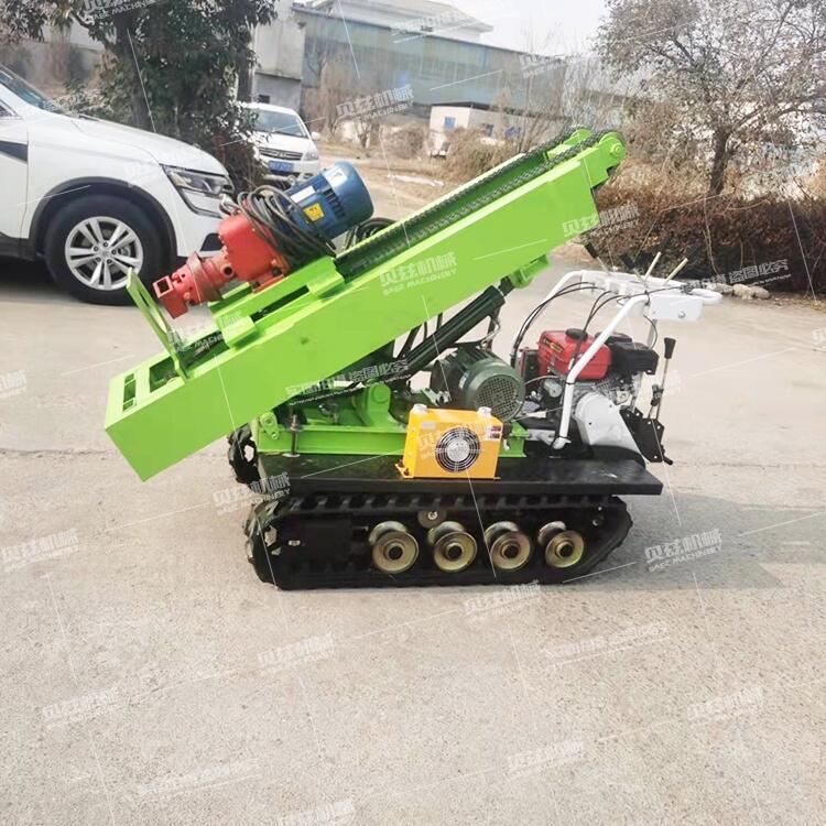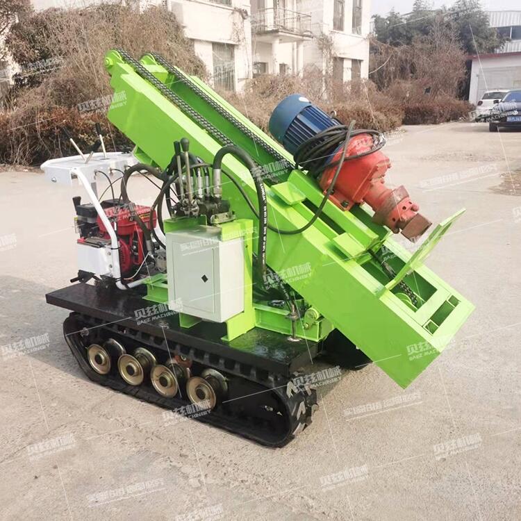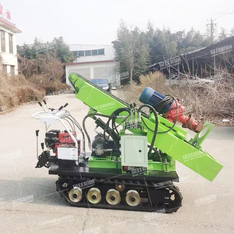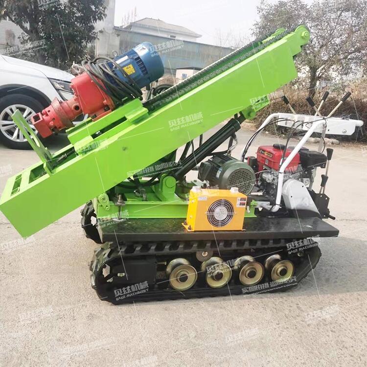 產(chǎn)品特點 1.高效節(jié)能的電動潛孔鉆機,也可以加裝純風(fēng)動馬達驅(qū)動或者液壓馬達驅(qū)動。 2.以電機為轉(zhuǎn)動力,經(jīng)濟、高效、節(jié)能,野外施工也可以改裝柴油機動力。 3.采用擺線針輪減速器,回轉(zhuǎn)扭矩大,鑿巖效率高。 4.新穎的過載保護,使鉆機運行穩(wěn)定可靠,可以加裝遙控裝置。 5.小型履帶行走搬移方便,操作簡單省力。 6.可以更換不同的動力頭實現(xiàn)打水井,取巖心,取土等施工要求。 三、產(chǎn)品參數(shù)