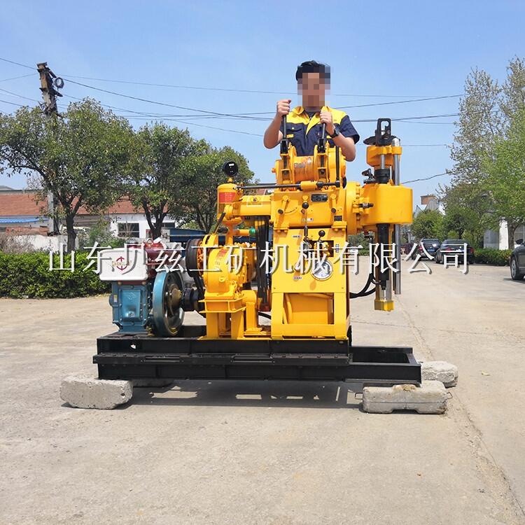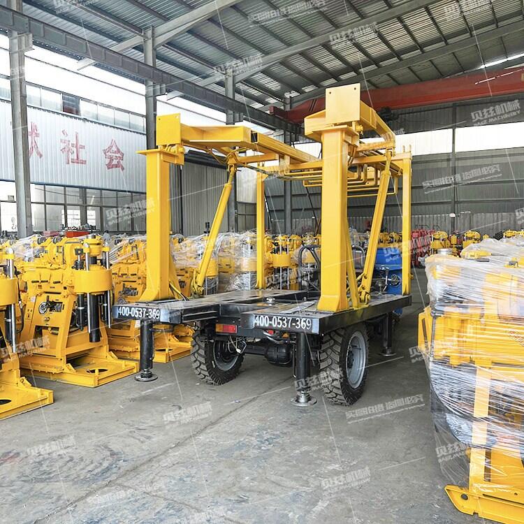 三輪車載式液壓地質(zhì)勘探水井鉆機(jī) 自動(dòng)升降液壓鉆塔鉆探機(jī)廠家 一、產(chǎn)品特點(diǎn): 1、車載鉆機(jī)為多功能液壓車載立軸回轉(zhuǎn)式鉆機(jī) 2、 汽車底盤采用五征三輪汽車7YP-1475D1,鉆機(jī)傳動(dòng)系統(tǒng)及卷揚(yáng),泥漿泵等重要附件安裝在此底盤上,布局合理緊湊,操作簡(jiǎn)便 3、 配置BW-160型泥漿泵,壓力高,流量大,保證鉆進(jìn)深度及鉆孔口徑 4、 鉆機(jī)自配移動(dòng)裝置,可以實(shí)現(xiàn)鉆機(jī)主機(jī)的自身前后移動(dòng),便于井口操作 5、 鉆機(jī)塔架液壓起落式折疊鉆塔,操作安全方便。 二、適應(yīng)范圍: 地質(zhì)普查勘探,道路及高層建筑物基礎(chǔ)勘探,以及各種混凝土結(jié)構(gòu)檢查孔,江河堤壩,路基灌漿孔鉆孔和直接灌漿,民用水井及地溫中央空調(diào)等。 三、產(chǎn)品參數(shù)