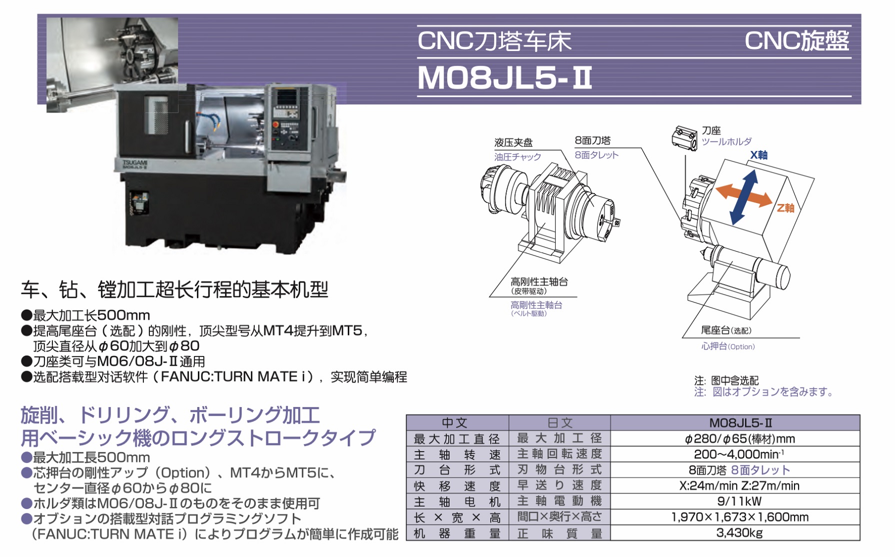 日本津上/TSUGAMICNC刀塔車床 日本津上M08JL5-II / M08JL8-II特征