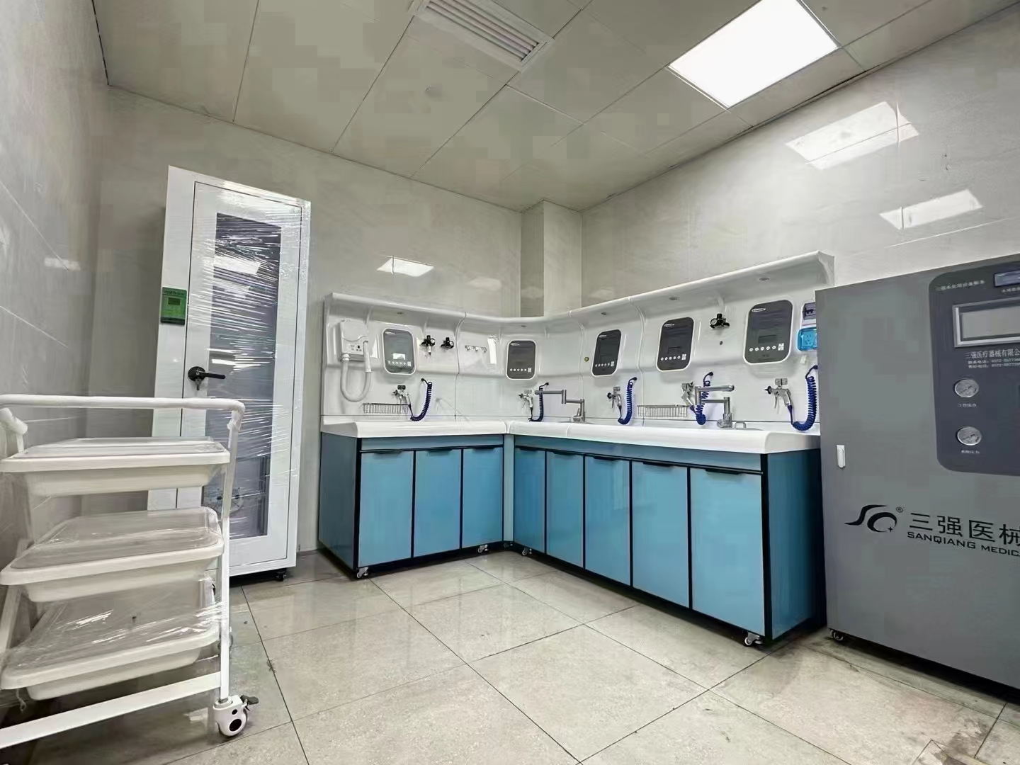 內(nèi)鏡清洗工作站,有初洗、酶洗、漂洗、消毒、末洗五個步驟。初洗使用高壓水槍和自動灌流器,對醫(yī)療器械進(jìn)行初步洗滌。酶洗過程添加多酶清洗液,將器械中的污漬徹底洗滌,該過程酶液可實現(xiàn)自動灌流,減輕了工作人員工作強(qiáng)度。漂洗過程將器械殘留的酶液去除。浸泡是用消毒液對醫(yī)療器械進(jìn)性高水平消毒的過程。末洗是將器械殘留的消毒液去除。