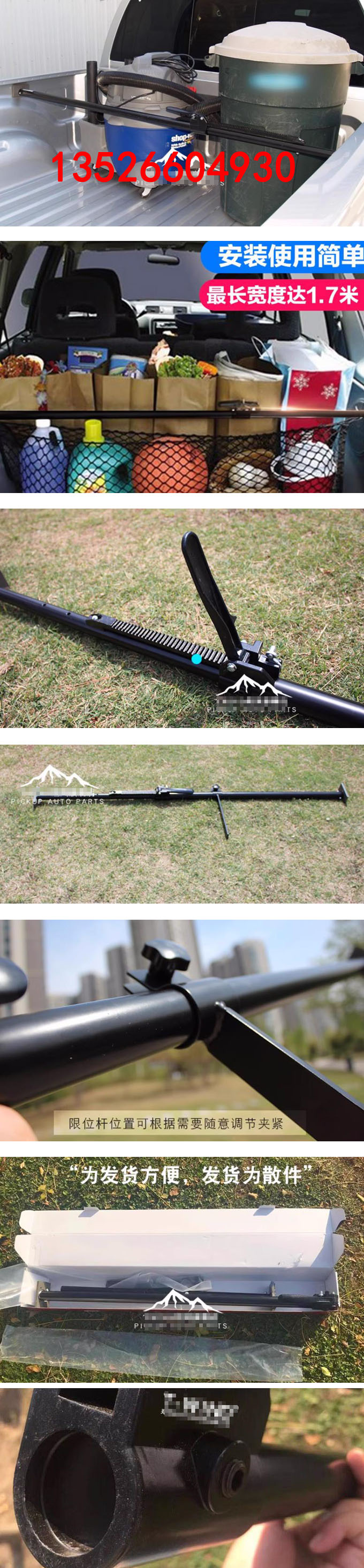 福特ranger皮卡車后備箱撐桿貨物擋桿改裝件,寬度可自由調(diào)節(jié)1.3-1.7米,主要用于固定貨物,防止貨物竄動。帶有壓角,壓角為活動設計,表面多個凸點設計,使其可更貼合車廂。限位桿位置可根據(jù)需要隨意調(diào)節(jié)夾緊。需簡單組裝。![]() |