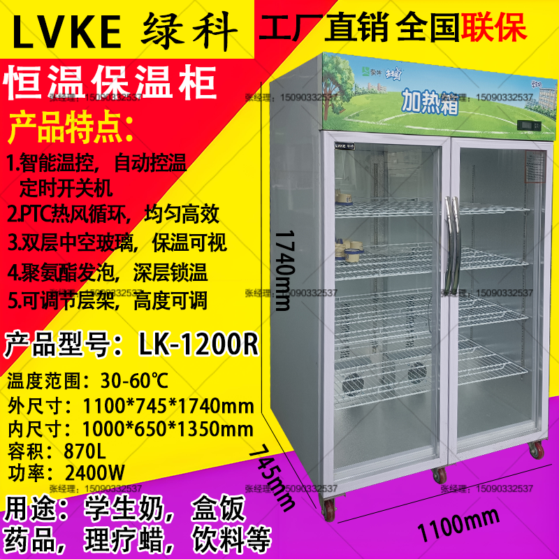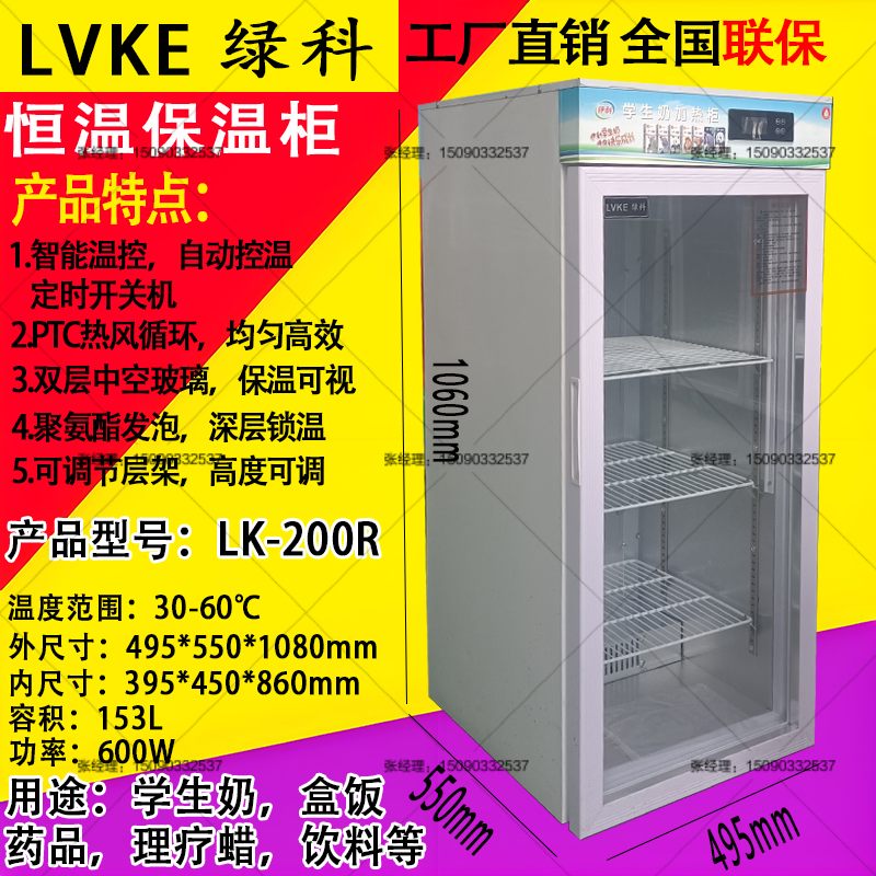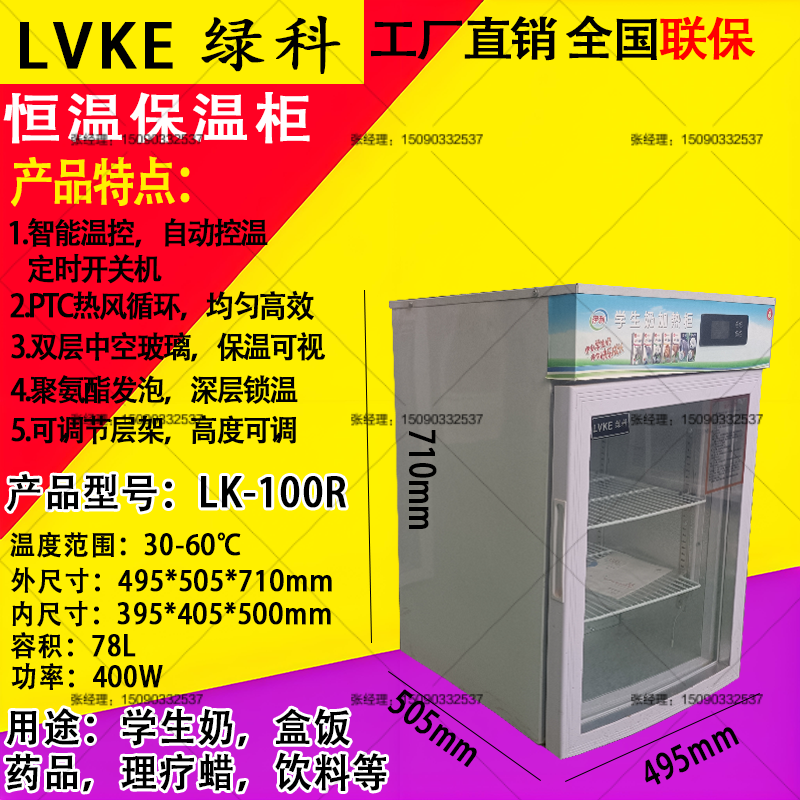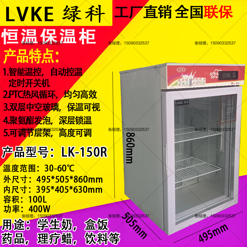 LVKE綠科學(xué)生奶加熱箱產(chǎn)品優(yōu)點(diǎn)簡(jiǎn)介 1.熱風(fēng)循環(huán),整個(gè)箱體內(nèi)部溫度更均勻2.PTC陶瓷環(huán)加熱,無名火,超過100攝氏度自動(dòng)斷電保護(hù) 3.智能電腦版控制,機(jī)器可以定時(shí)開關(guān)機(jī),可以設(shè)定周一至周天工作與否 4.聚氨酯發(fā)泡(與冰箱保溫層一樣),保溫效果更好 5.雙層中空玻璃,看清產(chǎn)品的同時(shí),可以有效的保溫 LVKE綠科品牌學(xué)生奶加熱箱通過多年的行業(yè)積累已經(jīng)成為學(xué)生奶加熱箱名列前茅的品牌,在整個(gè)行業(yè)有著較好的口碑,與多個(gè)學(xué)生奶品牌有著深度合作,其中有蒙牛,伊利,君樂寶,三劍客,衛(wèi)崗,光明,花花牛,新希望琴牌等多個(gè)品牌,在此基礎(chǔ)上綠科恒溫加熱箱又開發(fā)出了其他很多的功能,被用作盒飯保溫柜,快餐加熱保溫箱,藥品加熱保溫柜,防止藥品結(jié)晶保溫柜,生理鹽水加熱柜,理療蠟保溫箱,電池測(cè)試柜,飲料加熱箱等多種功能,期待與您合作開發(fā)更多的產(chǎn)品用途。 綠科學(xué)生奶加熱箱有多個(gè)型號(hào)可供選擇,容積從78L到1000L有多個(gè)產(chǎn)品型號(hào),產(chǎn)品型號(hào)分別有 LK-100R 78L LK-150R 100L LK-200R 153L LK-300R 330L LK-500R 430L LK-800R 560L LK-1000R 590L LK-1200R 870L LK-1500R 1000L |