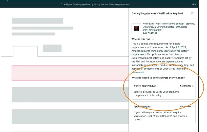 ?? 步驟一:打開“管理您的合規(guī)性(MYC)”頁面,找到“未完成請求” ① 前往【績效】,然后選擇【賬戶狀況】。在“政策合規(guī)性”下點擊“食品和商品安全問題” 。 ②當賣家點擊ASIN時,右側(cè)組件將顯示需要驗證的ASIN,并提供“驗證您的商品”或“申訴”兩個選項。