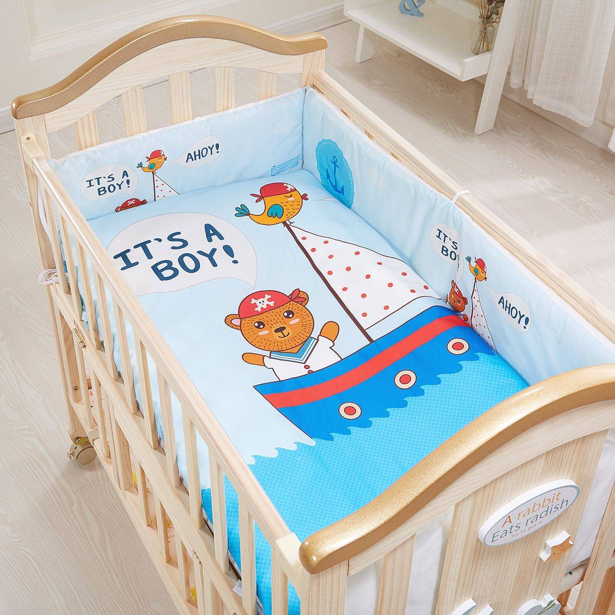 嬰兒睡眠用品 嬰兒睡眠用品是用于嬰兒睡眠或者針對(duì)嬰兒睡眠而設(shè)計(jì)或營(yíng)銷的商品。這些商品包括但不限于嬰兒床、搖籃式嬰兒床、摩西籃、搖籃、床邊床、傾斜睡眠用品、家用幼兒床和便攜式折疊幼兒床。還涵蓋旨在安撫嬰兒的商品,如彈跳椅以及供日間使用、為嬰兒提供支撐、舒適度或娛樂的搖椅。 嬰兒床 嬰兒床又稱幼兒床,專為 0 至 24 月齡的嬰幼兒提供睡眠環(huán)境。嬰兒床四周有護(hù)欄,通常一側(cè)護(hù)欄垂下,方便護(hù)理嬰幼兒。 全尺寸嬰兒床的內(nèi)部尺寸如下:
