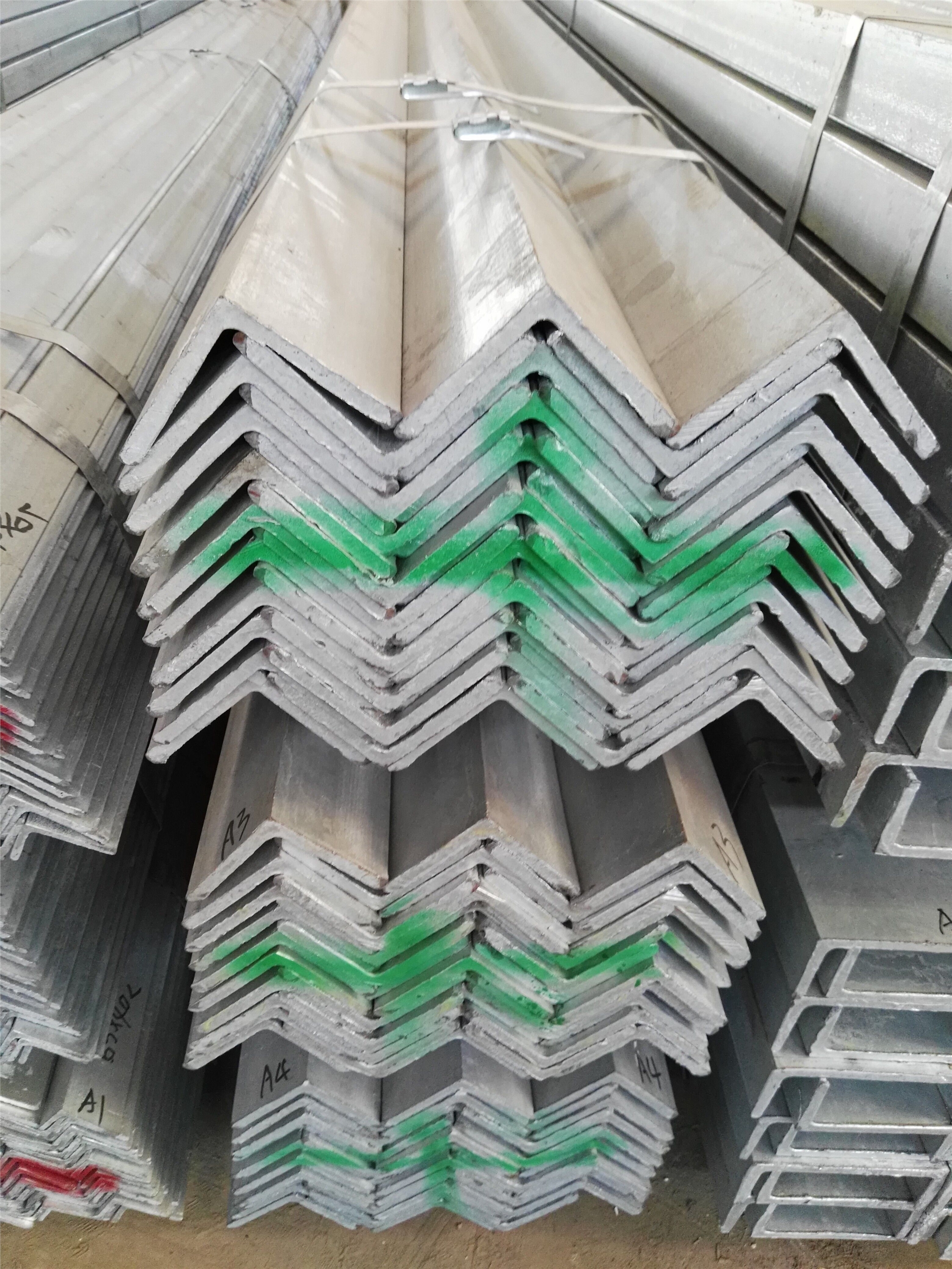 日標角鋼是兩邊互相垂直成角形的長條鋼材。有等邊角鋼和不等邊角鋼之分。執(zhí)行標準:JIS3101-2014,牌號:SS400、SS490等,等邊角鋼的 兩個邊寬相等。其規(guī)格以邊寬×邊寬×邊厚的毫米數(shù)表示。如“∟65×65×6”,即表示邊寬為 65毫米、邊厚為6毫米的等邊角鋼。也可用型號表示,型號是邊寬的厘米數(shù),如∟6.5#。型號不表示同一型號中不同邊厚的尺寸,因而在合同等單據(jù)上將角鋼的邊寬、邊厚尺寸填寫齊全,避免單獨用型號表示。熱軋等邊角鋼的規(guī)格為2#-20#。角鋼可按結(jié)構(gòu)的不同需要組成各種不同的受力構(gòu)件,也可作構(gòu)件之間的連接件。廣泛地用于各種建筑結(jié)構(gòu)和工程結(jié)構(gòu),如房梁、橋梁、輸電塔、起重運輸機械、船舶、工業(yè)爐、反應塔、容器架以及倉庫。